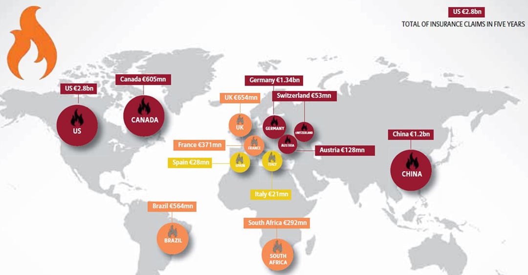 Die direkten physischen Auswirkungen eines Brandes verursachen häufig hohe Kosten. Doch wegen der zunehmenden Verflechtung der Unternehmen untereinander liegen die Kosten für Betriebsunterbrechung (BU) und Rückwirkungsschäden (Contingent Business Interruption = CBI) in der Regel noch höher.