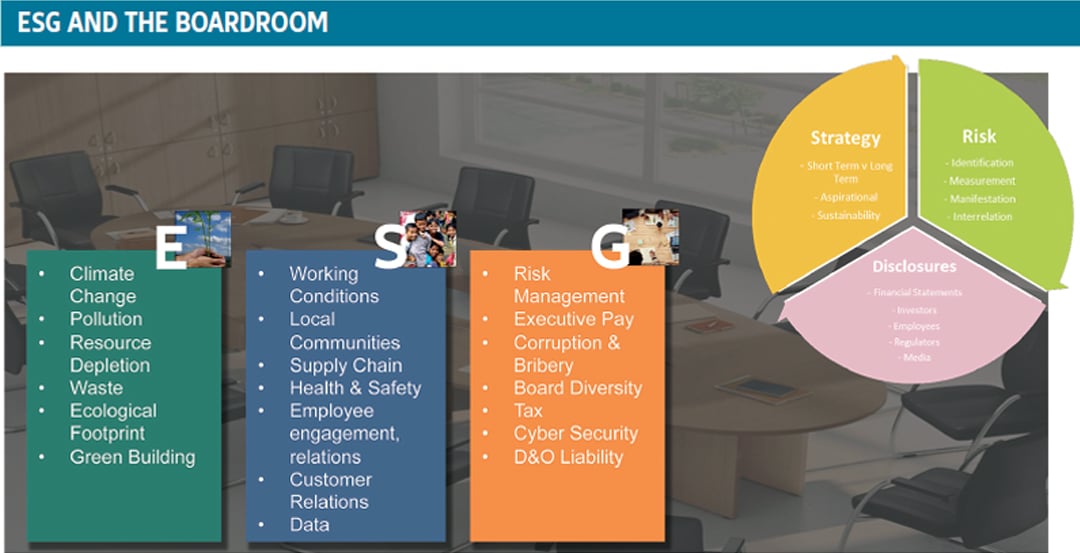 - Es ist entscheidend, ESG-Risiken über die Risikoregister und Ausschüsse eines Unternehmens zu identifizieren und sicherzustellen, dass verstanden wird, wie sie sich innerhalb und außerhalb der Vorstandsetage auswirken werden.