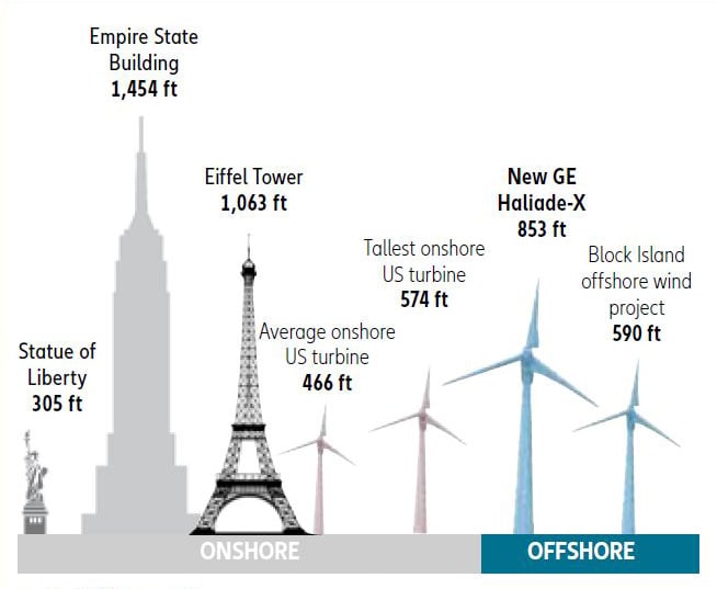 - 853ft: Height of wind turbine generators