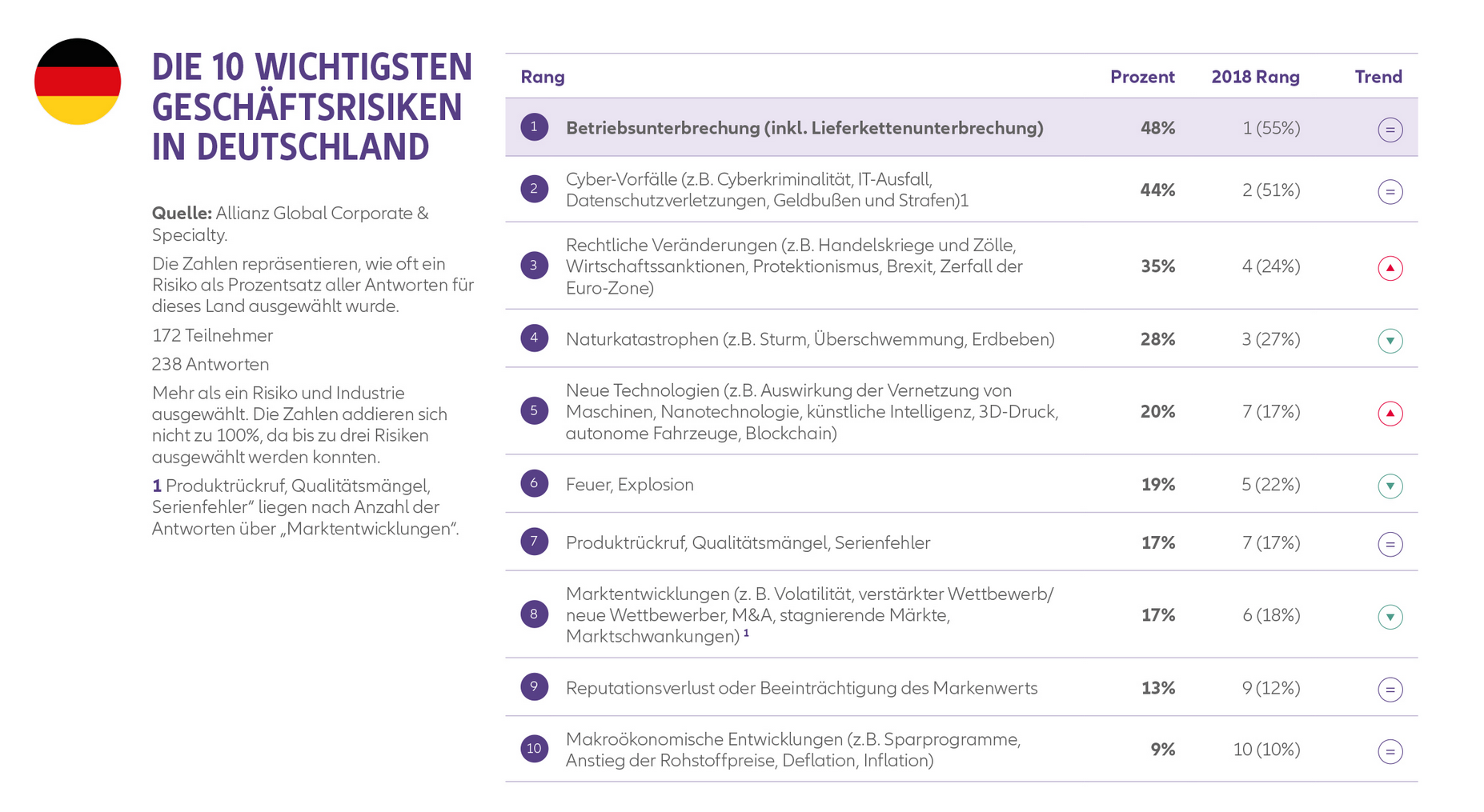 - Achte Umfrage der Allianz Global Corporate & Specialty zu den wichtigsten Unternehmensrisiken unter über 2.400 Risikoexperten aus 86 Ländern.